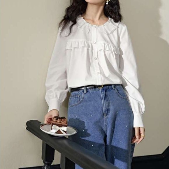 愛らしい印象の白ふんわりブラウス 丸襟デザイン