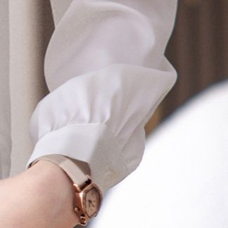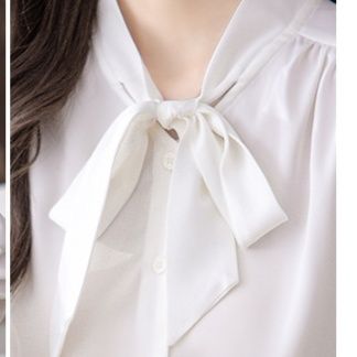 上品なリボンが印象的な白シャツです。