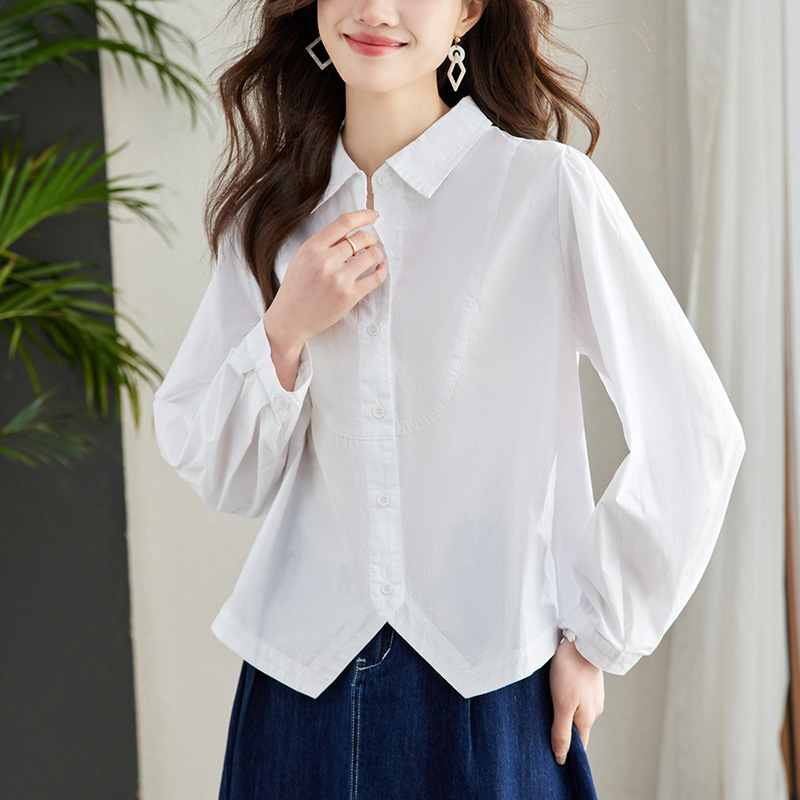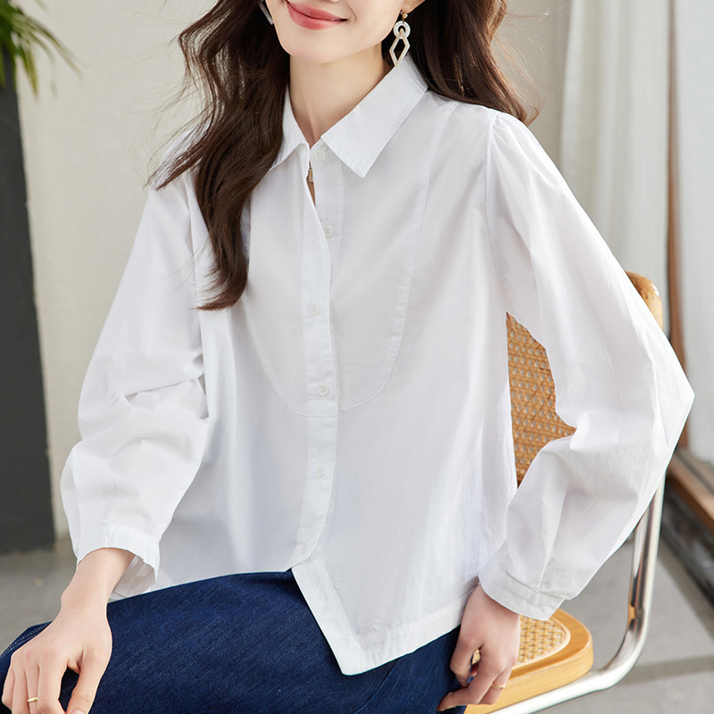 きちんと感のある襟元とゆったりとしたシルエットで、通勤からカジュアルまで幅広く活躍するシャツです。