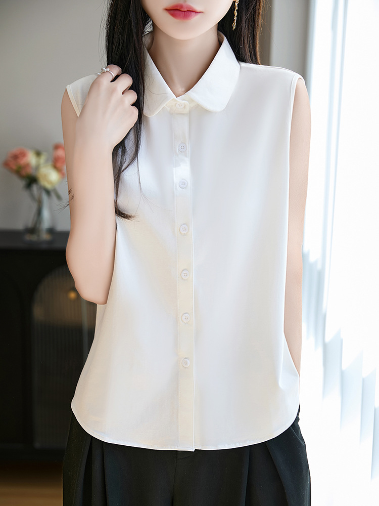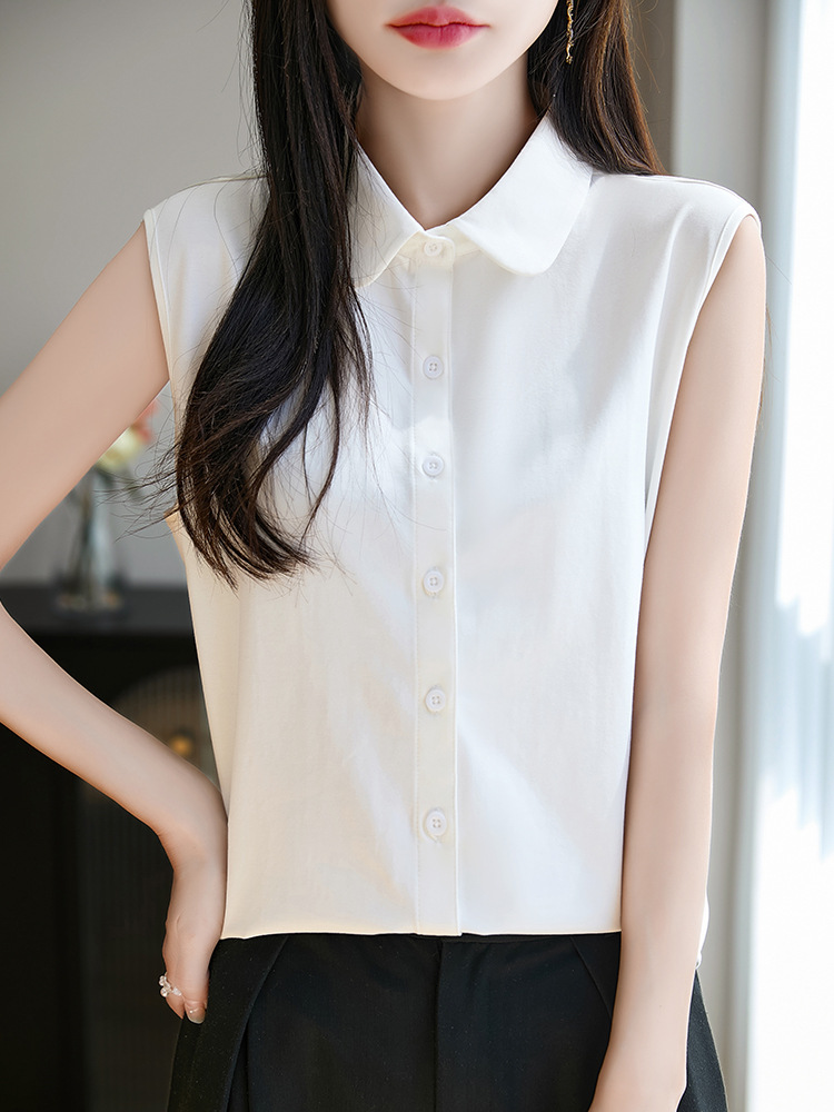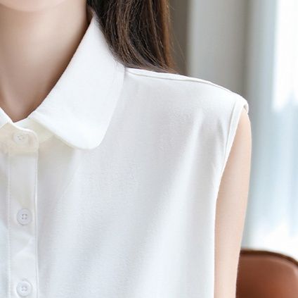 ノースリーブタイプの白シャツで、暑い季節も快適に着用できます。
