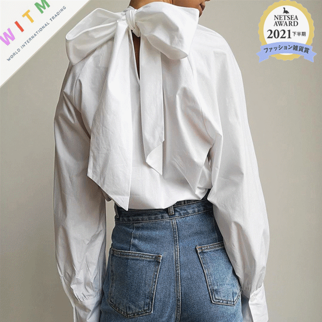 デニムパンツやスカートとも相性抜群で、リボンディテールが上品な印象を演出します。