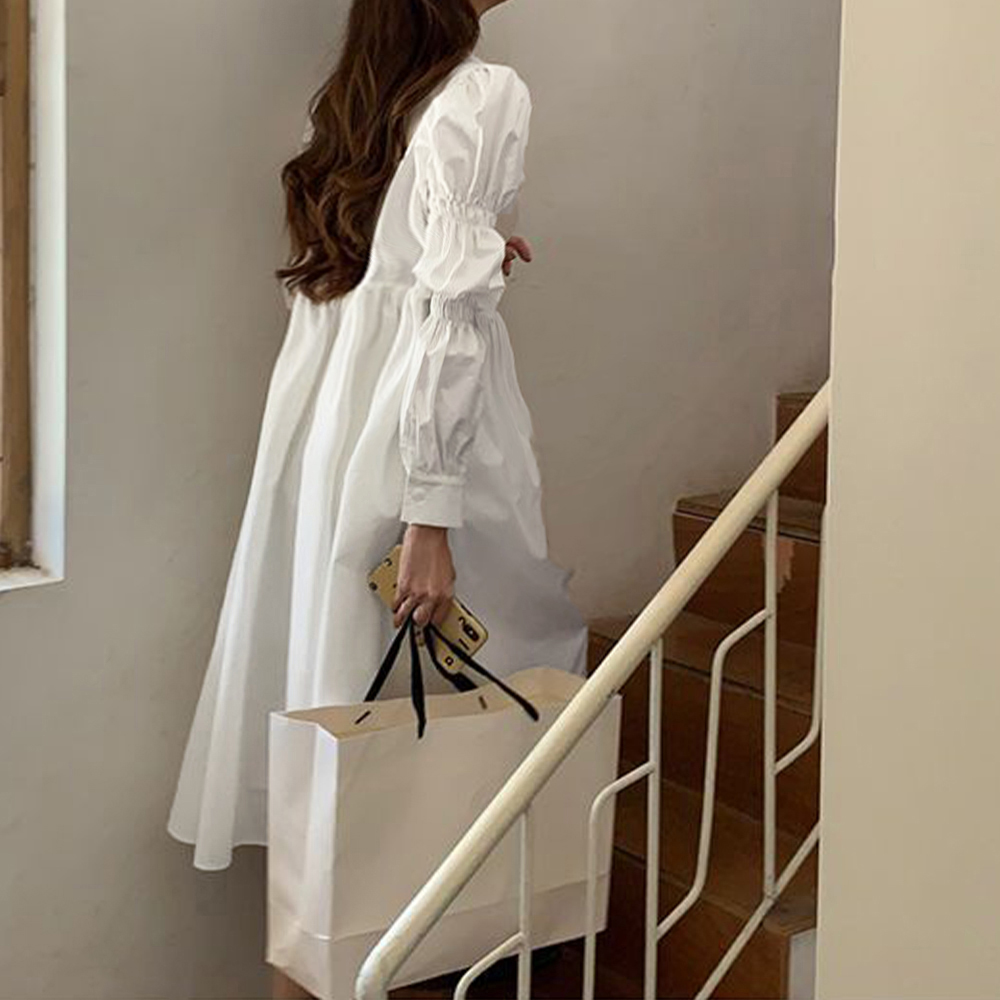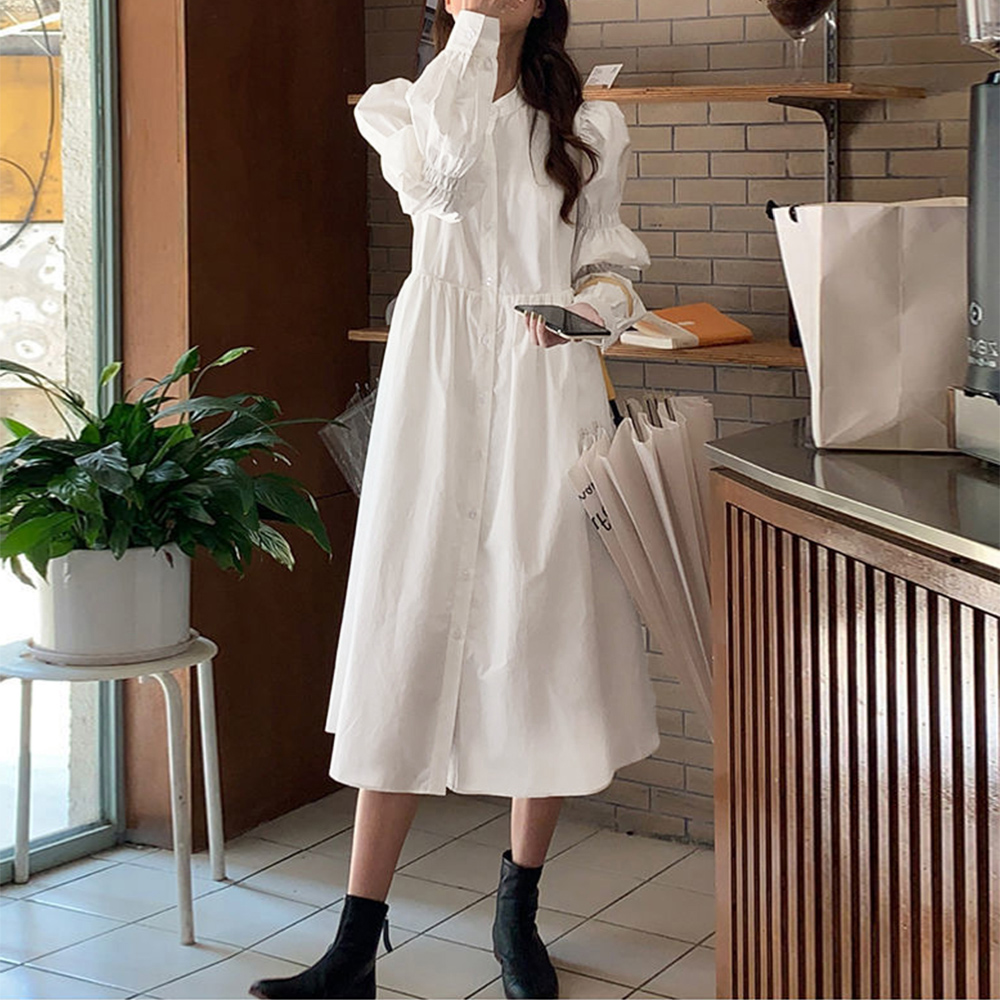 春から秋まで長く愛用できる、体型カバーも叶える優秀な白シャツワンピースです。